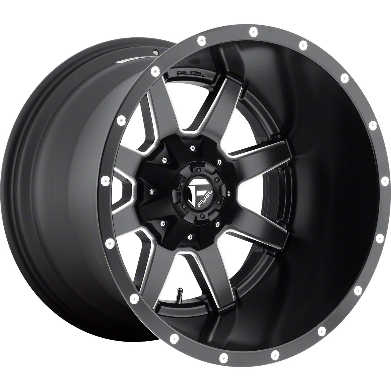 Fuel Wheels Maverick Matte Black Milled 6-Lug Wheel; 20x14; -76mm Offset exudes sophistication with its finish, offering a sleek and modern appeal to any vehicle it adorns. The design is meticulously crafted to enhance the aesthetic of your vehicle, giving it a distinctive and upscale look. Perfect for those seeking to elevate their vehicle's style, this wheel blends seamlessly with both contemporary and classic vehicle designs, making it a versatile choice for a wide range of vehicles. Its robust construction ensures durability, making it a reliable choice for drivers who value both style and quality.