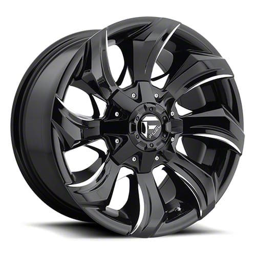 The 20x9 Fuel Wheels STRYKR Gloss Black Milled 6-Lug Wheel is completed in a high-quality gloss black finish, with steel milled accents. Thanks to a durable clear coat, the finish looks amazing and also protects against the rigors of driving.