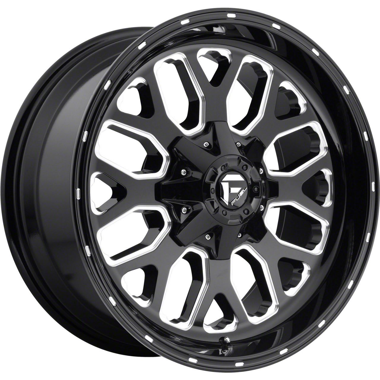 The 20x9 Fuel Wheels Titan Gloss Black Milled 6-Lug Wheel is completed in a high-quality gloss black finish, with steel milled accents. Thanks to a durable clear coat, the finish looks amazing and also protects against the rigors of driving.