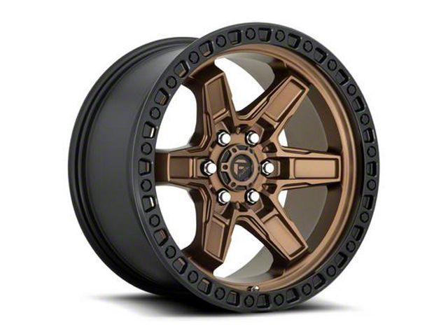 The 20x9 Fuel Wheels Kicker Matte Bronze 6-Lug Wheel is completed in a high-quality bronze finish for an aggressive appearance. For added protection and good looks, there is a durable clear coat that withstands the rigors of everyday driving.