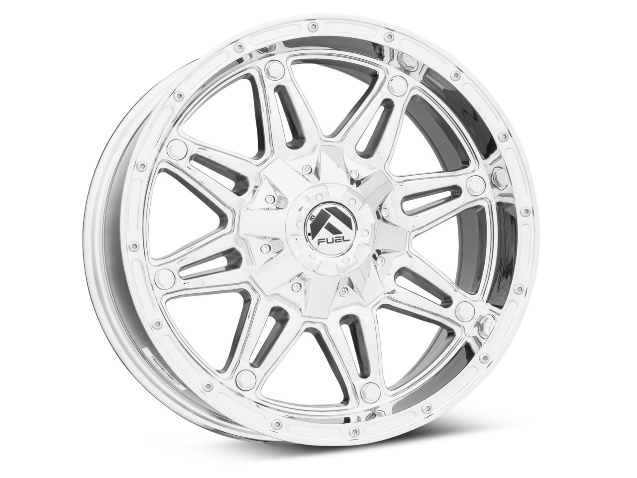 This 22x9.5 Fuel Wheels Hostage Chrome 5-Lug Wheel is completed in a high-quality chrome finish that will make everyone notice. Copper, nickel and chrome came together in an extraordinary 3-step plating process.