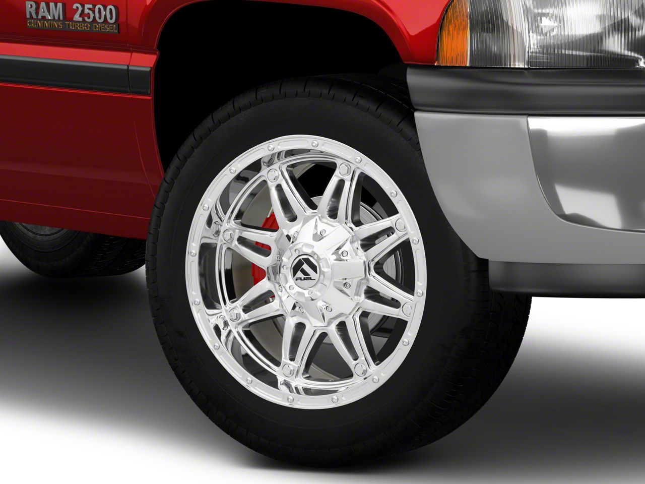 Application. This Fuel Wheels Hostage Chrome 8-Lug Wheel; 20x9; 1mm Offset, with a backspacing of 5.039 Inch, 128mm and bolt pattern of 8 x 165.1mm (8 x 6.5-Inch), is designed to fit 1994-2002 RAM 2500 models. Sold individually.