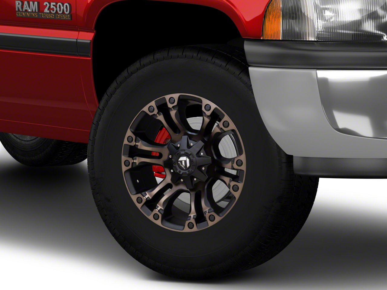 Application. This Fuel Wheels Vapor Matte Black Double Dark Tint 8-Lug Wheel; 17x9; 1mm Offset, with a backspacing of 5.039 Inch, 128mm and bolt pattern of 8 x 165.1mm (8 x 6.5-Inch), is designed to fit 1994-2002 RAM 2500 models. Sold individually.