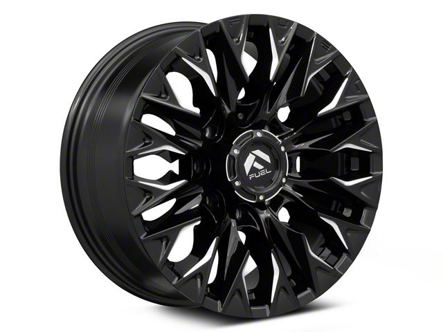Fuel Wheels Flame Gloss Black Milled 8-Lug Wheel; 20x9; 1mm Offset is a wheel that stands out with its refined design and precision finish, making it a perfect match for vehicles that demand a sophisticated yet aggressive appearance.