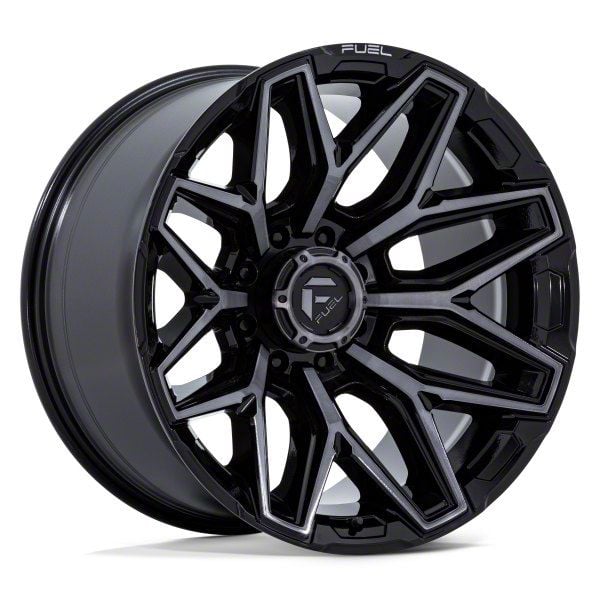 Fuel Wheels Flux Gloss Black Brushed Face with Gray Tint 8-Lug Wheel; 20x10; -18mm Offset is a wheel that stands out with its refined design and precision finish, making it a perfect match for vehicles that demand a sophisticated yet aggressive appearance.