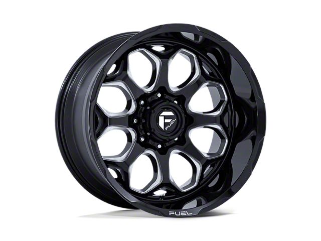 Fuel Wheels Scepter Gloss Black Milled 8-Lug Wheel; 22x10; -18mm Offset is a wheel that stands out with its refined design and precision finish, making it a perfect match for vehicles that demand a sophisticated yet aggressive appearance.