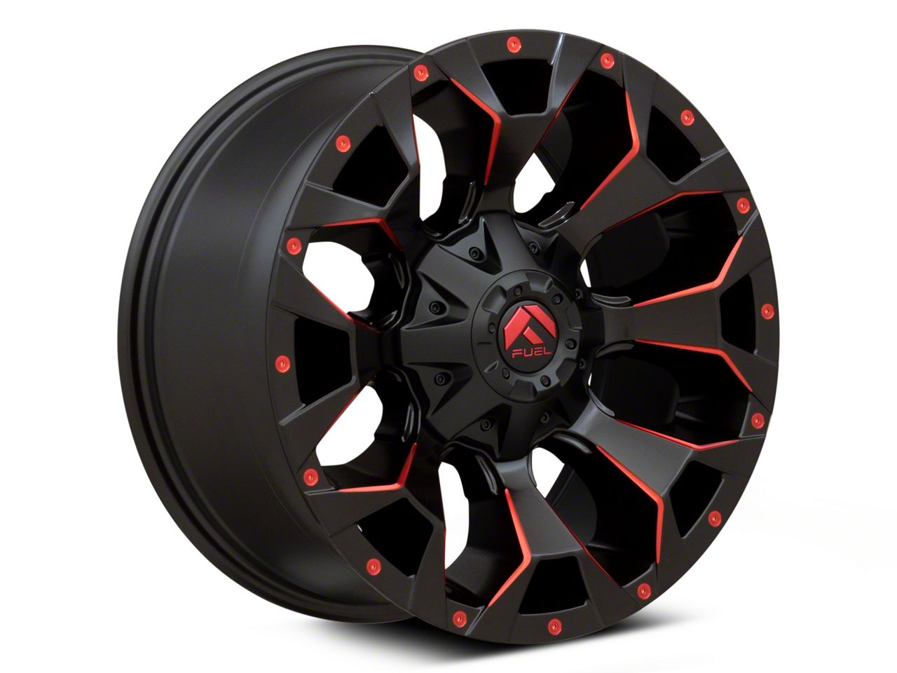 Fuel Wheels Assault Matte Black Red Milled 6-Lug Wheel; 17x9; -12mm Offset exudes a captivating aesthetic appeal that seamlessly complements various vehicle styles. The craftsmanship of Fuel Wheels ensures a robust and premium feel, making it a standout choice for discerning drivers.