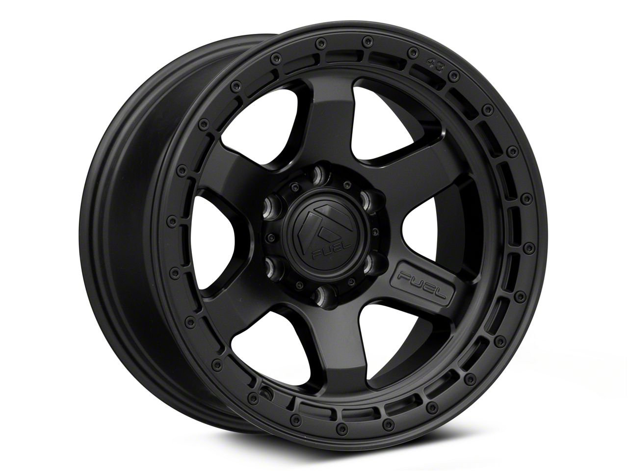 Fuel Wheels Block Matte Black with Black Ring 6-Lug Wheel; 17x9; -12mm Offset The Fuel Wheels Block Matte Black with Black Ring 6-Lug Wheel showcases a blend of race-inspired aesthetics, ideal for those seeking a premium and robust appearance. Its design complements various vehicle styles, adding sophistication.