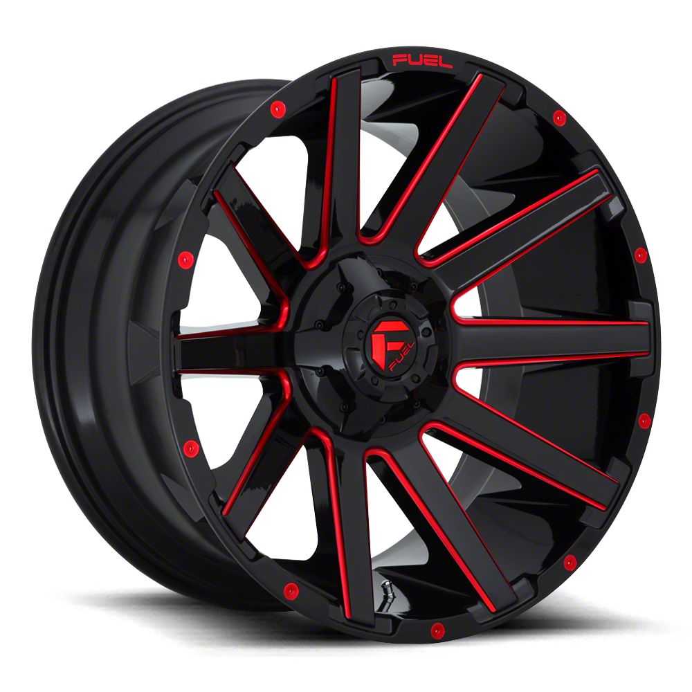 The 20x9 Fuel Wheels Contra Gloss Black Red Tinted Clear 6-Lug Wheel underwent a thorough finishing process that protects your wheel from driving hazards, while looking great in the process.