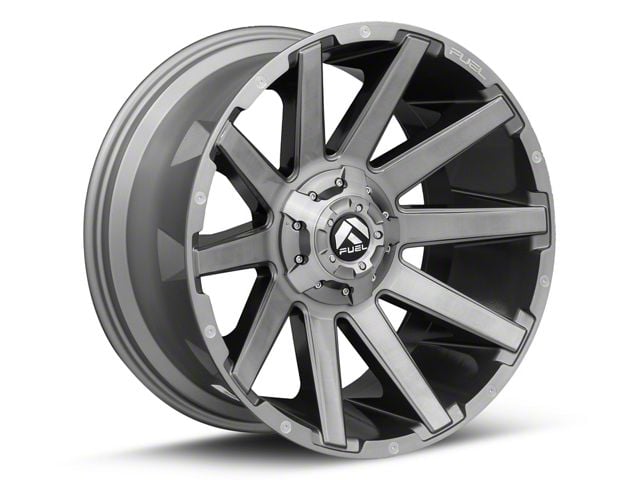 Fuel Wheels Contra Platinum Brushed Gunmetal with Tinted Clear 6-Lug Wheel; 20x10; -19mm Offset The Fuel Wheels Contra Platinum Brushed Gunmetal with Tinted Clear 6-Lug Wheel combines a sleek, sophisticated design with premium construction that enhances the visual appeal and complements a wide range of vehicle styles. This wheel is perfect for those seeking to make a bold statement while maintaining elegance and robustness.