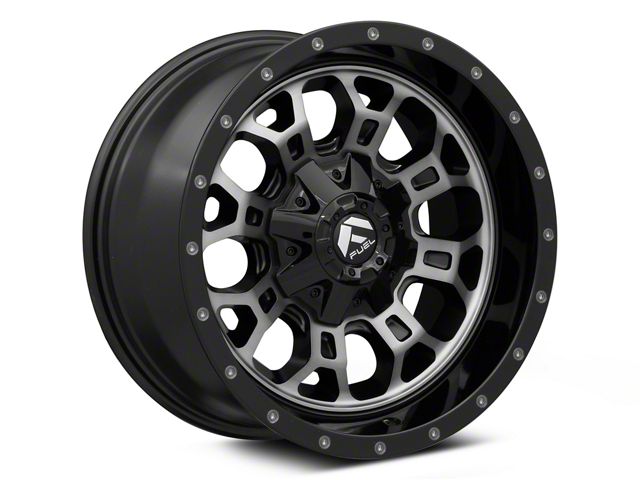 Fuel Wheels Crush Gloss Machined Double Dark Tint 6-Lug Wheel; 18x9; 19mm Offset - Experience the sleek elegance of the Fuel Wheels wheel. Its matte black finish adds a touch of sophistication to your vehicle, enhancing its overall appearance without compromising on durability. Perfect for a variety of vehicle styles, this wheel is a testament to the brand's commitment to quality and aesthetic excellence.