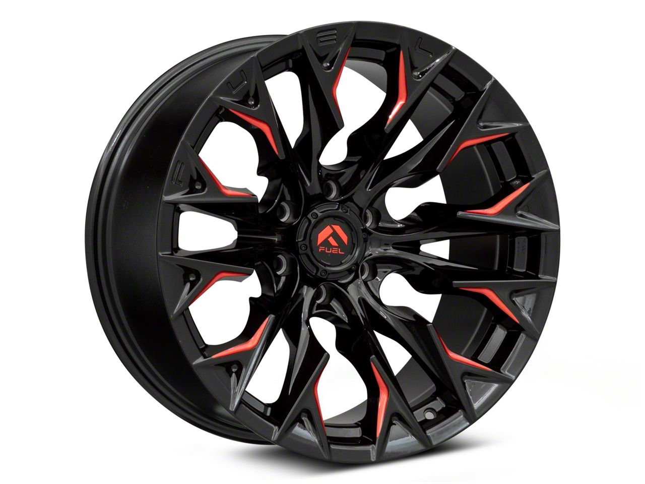 Fuel Wheels Flame Gloss Black Milled with Red Accents 6-Lug Wheel; 20x9 exudes an aesthetic allure that complements a range of vehicle styles. With its design rooted in Fuel Wheels craftsmanship, this wheel accentuates your vehicle's elegant stance.