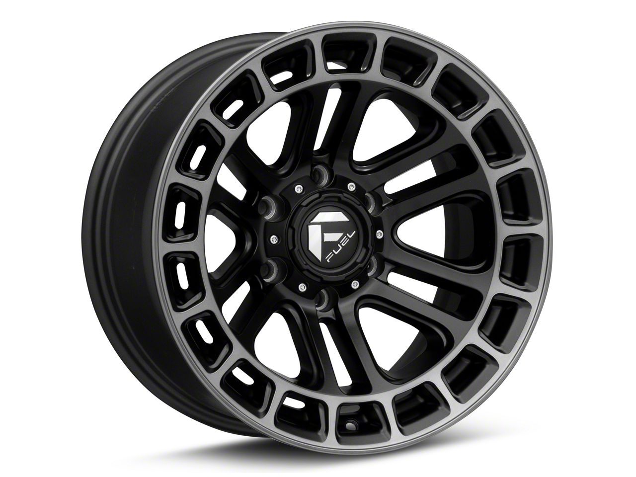 Fuel Wheels Heater Matte Black Double Dark Tint Machined 6-Lug Wheel; 17x9; -12mm Offset - Experience the sleek elegance of the Fuel Wheels wheel. Its matte black finish adds a touch of sophistication to your vehicle, enhancing its overall appearance without compromising on durability. Perfect for a variety of vehicle styles, this wheel is a testament to the brand's commitment to quality and aesthetic excellence.
