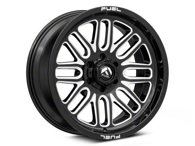 This 20x9 Fuel Wheels Ignite Gloss Black Milled 6-Lug Wheel is completed in a high-quality gloss black finish with steel milled accents that will create a striking appearance. There's a durable clear coat that protects against driving hazards.