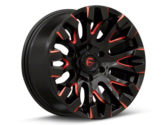 Fuel Wheels Quake Gloss Black Milled with Red Tint 6-Lug Wheel; 20x9; 1mm Offset: Redefine your vehicle's style with the Fuel Wheels Quake Gloss Black Milled with Red Tint 6-Lug Wheel. This wheel's elegant design and striking finish embody a blend of sophistication and boldness, perfectly complementing a wide array of vehicle aesthetics. Crafted from high-quality materials, it's a testament to durability and style.