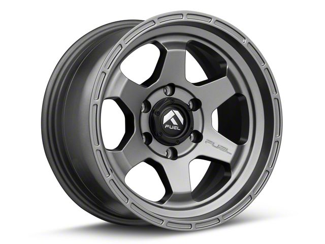 Fuel Wheels Shok Matte Gunmetal 6-Lug Wheel; 17x9; 1mm Offset The Fuel Wheels Shok Matte Gunmetal 6-Lug Wheel showcases a blend of race-inspired aesthetics, ideal for those seeking a premium and robust appearance. Its design complements various vehicle styles, adding sophistication.