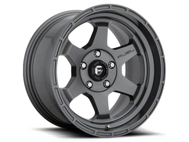 Fuel Wheels Shok Textured Anthracite 6-Lug Wheel; 17x10; -18mm Offset offers a sleek and modern design that enhances the visual appeal of any vehicle. Crafted with attention to detail, this wheel merges aesthetic elegance with a robust build, making it a fitting choice for those seeking a blend of style and durability.