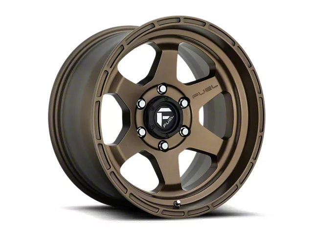 Fuel Wheels Shok Textured Bronze 6-Lug Wheel; 17x10; -18mm Offset exudes sophistication with its finish, offering a sleek and modern appeal to any vehicle it adorns. The design is meticulously crafted to enhance the aesthetic of your vehicle, giving it a distinctive and upscale look. Perfect for those seeking to elevate their vehicle's style, this wheel blends seamlessly with both contemporary and classic vehicle designs, making it a versatile choice for a wide range of vehicles. Its robust construction ensures durability, making it a reliable choice for drivers who value both style and quality.
