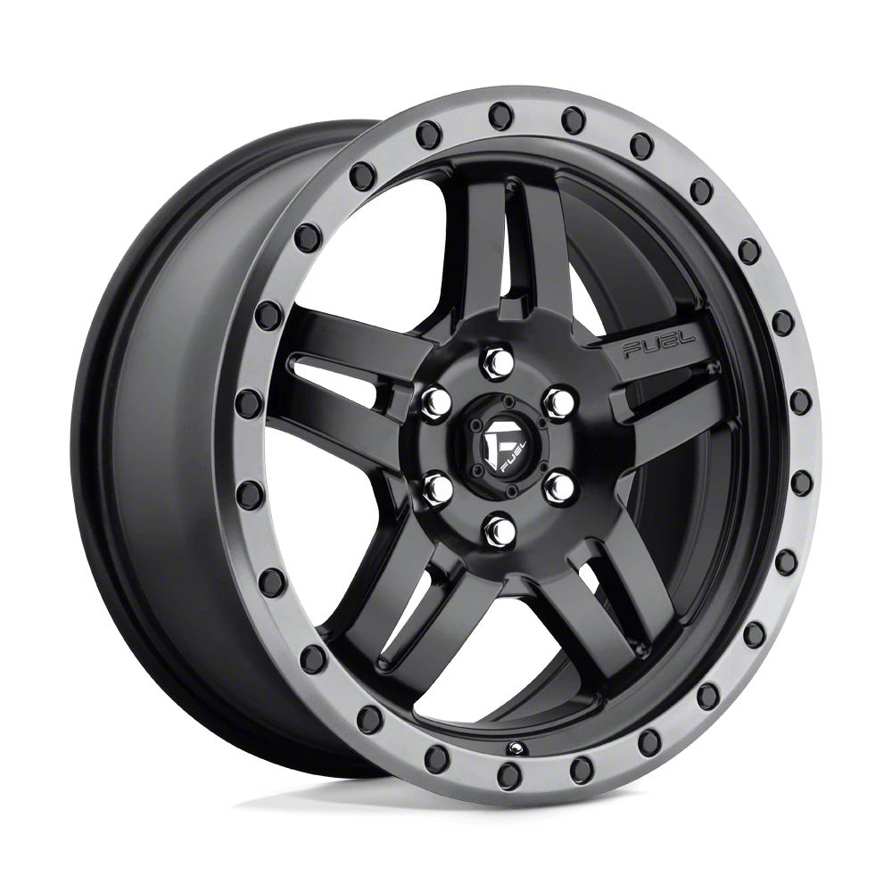 Fuel Wheels Anza Matte Black with Gunmetal Ring 6-Lug Wheel; 18x8; 27mm Offset The Fuel Wheels Anza Matte Black with Gunmetal Ring 6-Lug Wheel combines a sleek, sophisticated design with premium construction that enhances the visual appeal and complements a wide range of vehicle styles. This wheel is perfect for those seeking to make a bold statement while maintaining elegance and robustness.