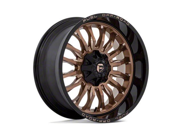 Fuel Wheels Arc Platinum Bronze with Black Lip 6-Lug Wheel; 22x10; -18mm Offset The Fuel Wheels Arc Platinum Bronze with Black Lip 6-Lug Wheel combines a sleek, sophisticated design with premium construction that enhances the visual appeal and complements a wide range of vehicle styles. This wheel is perfect for those seeking to make a bold statement while maintaining elegance and robustness.
