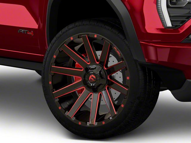 Application. This Fuel Wheels Contra Gloss Black with Red Tint 6-Lug Wheel; 22x10, with a backspace of 4.752 Inch, 120.7mm and a bolt pattern of 6 x 139.7mm (6 x 5.5-Inch), is designed to enhance alignment and driving stability. It's specially designed to fit the 2023-2026 Canyon models, sold individually.