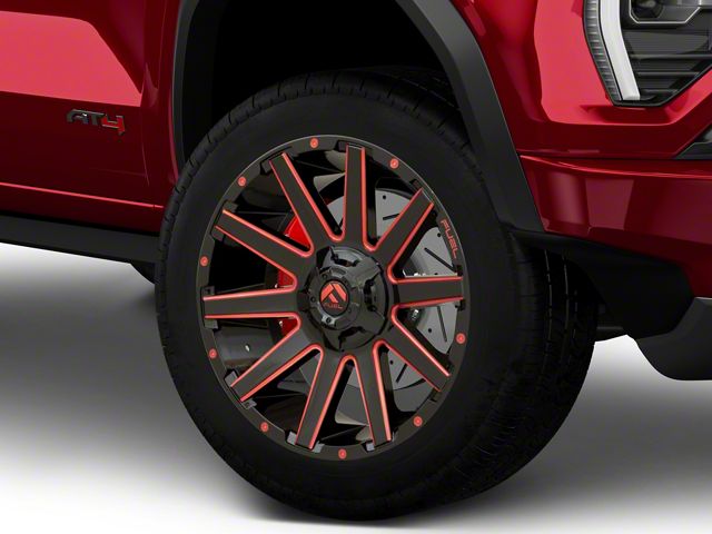 Application. This Fuel Wheels Contra Gloss Black with Red Tinted Clear 6-Lug Wheel; 20x9, with a backspace of 5.787 Inch, 147mm and a bolt pattern of 6 x 139.7mm (6 x 5.5-Inch), is designed to enhance alignment and driving stability. It's specially designed to fit the 2023-2026 Canyon models, sold individually.