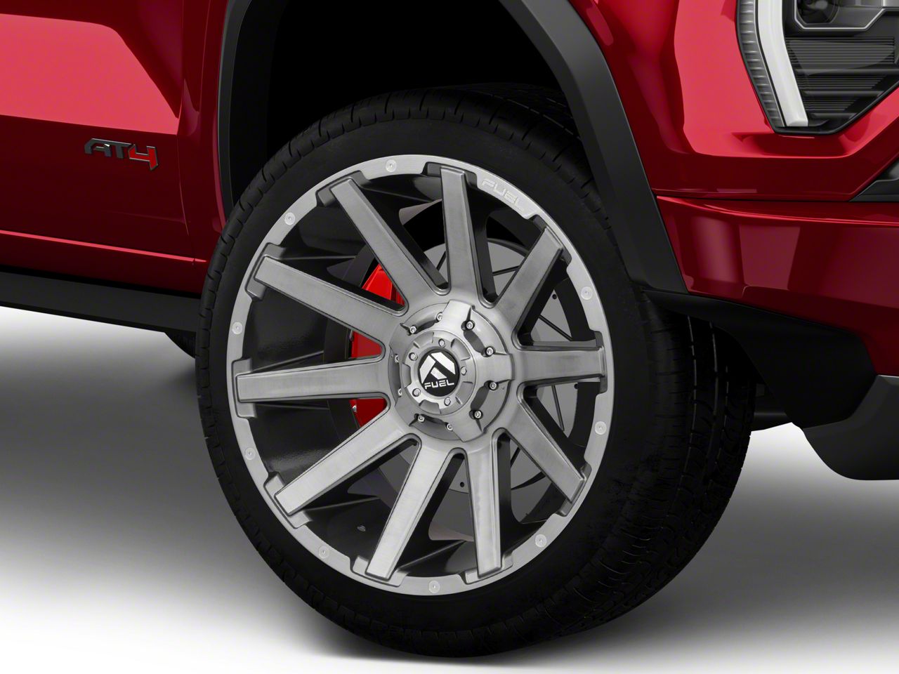 Application. This Fuel Wheels Contra Platinum Brushed Gunmetal with Tinted Clear 6-Lug Wheel; 22x12; -43mm Offset, with a backspace of 4.807 Inch, 122.1mm; and bolt pattern of 6 x 139.7mm (6 x 5.5-Inch), is designed to fit the 2023-2026 Canyon . The precise specifications of the wheel ensure proper alignment and driving stability, perfectly complementing the vehicle's model. Sold individually.