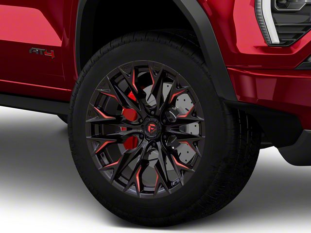 Application. This Fuel Wheels Flame Gloss Black Milled with Candy Red 6-Lug Wheel; 20x9, with a backspace of 5.039 Inch, 128mm and a bolt pattern of 6 x 139.7mm (6 x 5.5-Inch), is designed to enhance alignment and driving stability. It's specially designed to fit the 2023-2026 Canyon models, sold individually.