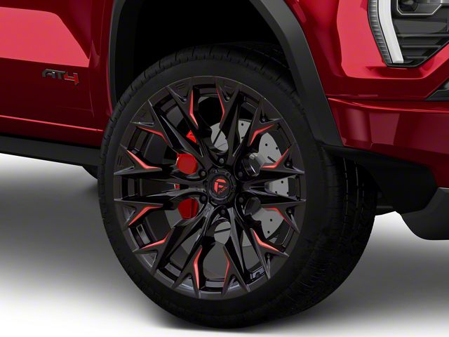 Application. This Fuel Wheels Flame Gloss Black Milled with Candy Red 6-Lug Wheel; 22x10; -18mm Offset, with a backspace of 4.791 Inch, 121.7mm; and bolt pattern of 6 x 139.7mm (6 x 5.5-Inch), is designed to fit the 2023-2026 Canyon . The precise specifications of the wheel ensure proper alignment and driving stability, perfectly complementing the vehicle's model. Sold individually.
