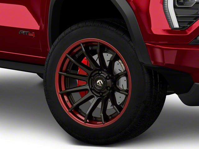 Application. This Fuel Wheels Fusion Forged Burn Matte Black with Candy Red Lip 6-Lug Wheel; 20x10; -18mm Offset, featuring a backspace of 4.791 Inch, 121.7mm and a bolt pattern of 6 x 139.7mm (6 x 5.5-Inch), is engineered to optimize alignment and ensure driving stability. Designed to fit 2023-2026 GMC Canyon models, it seamlessly integrates with your vehicle's aesthetics and performance requirements. Each wheel is sold individually.