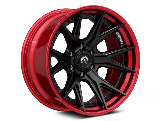 Fuel Wheels Fusion Forged Catalyst Matte Black with Candy Red Lip 6-Lug Wheel; 20x10; -18mm Offset symbolizes a fusion of elegance and robustness, enhancing your vehicle's appearance with its unique design. This wheel, characterized by its sophisticated craftsmanship, is ideal for a wide range of vehicle types, from powerful trucks to modern SUVs.