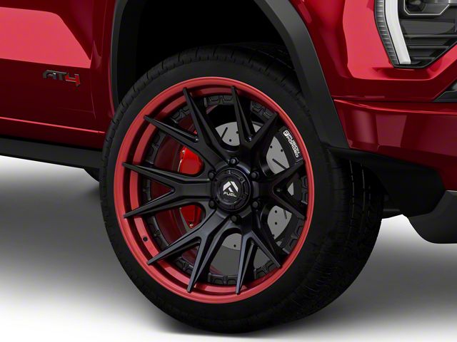 Application. The Fuel Wheels Fusion Forged Catalyst Matte Black with Candy Red Lip 6-Lug Wheel; 22x10; -18mm Offset, with a backspace of 4.791 Inch, 121.7mm and a bolt pattern of 6 x 139.7mm (6 x 5.5-Inch), is designed to enhance alignment and stability for a smooth driving experience. Specifically tailored to fit 2023-2026 GMC Canyon models, it ensures a perfect blend of style and functionality. Sold individually, this wheel is an ideal upgrade for your vehicle.