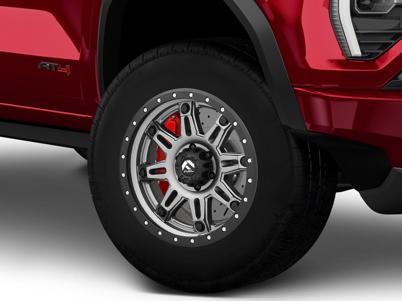 Application. This Fuel Wheels Hostage III Anthracite with Black Ring 6-Lug Wheel; 17x9, with a backspace of 5.039 Inch, 128mm and a bolt pattern of 6 x 139.7mm (6 x 5.5-Inch), is designed to enhance alignment and driving stability. It's specially designed to fit the 2023-2026 Canyon models, sold individually.