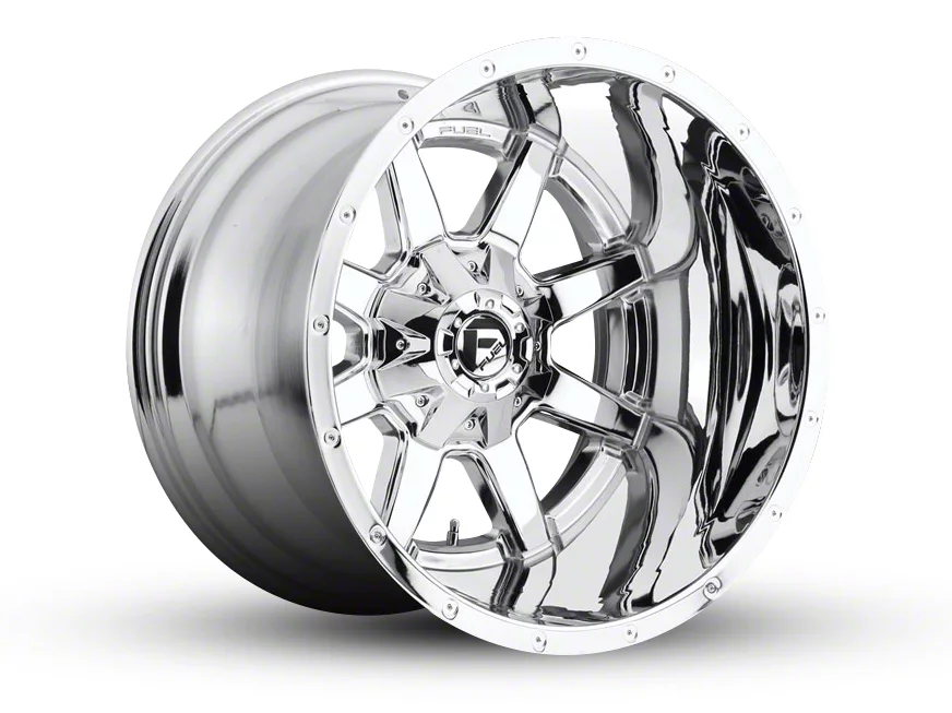 This 20x14 Fuel Wheels Maverick Chrome 6-Lug Wheel is completed in a high-quality, polished chrome finish that will make the wheel the envy of everyone. There is a durable clear coat that protects against driving hazards.One-Piece Cast Aluminum Construction. This wheel is manufactured using gravity casting. Gravity casting is the process of pouring a molten aluminum alloy into a wheel mold or form utilizing the earth's own gravity to help fill the mold. The result is a strong, durable wheel that has the same good looks as a more expensive wheel, at a fraction of the price.