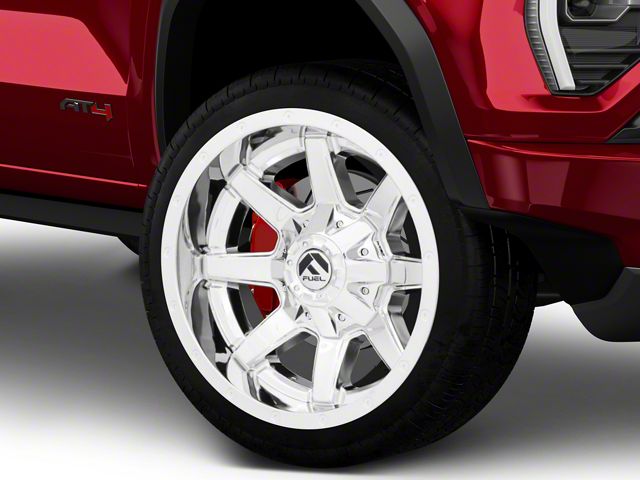 Application. This Fuel Wheels Maverick Chrome 6-Lug Wheel; 22x9.5; 20mm Offset, with a backspace of 6.037 Inch, 153.3mm; and bolt pattern of 6 x 139.7mm (6 x 5.5-Inch), is designed to fit the 2023-2026 Canyon . The precise specifications of the wheel ensure proper alignment and driving stability, perfectly complementing the vehicle's model. Sold individually.