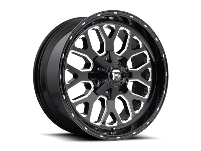 This 22x10 Fuel Wheels Titan Gloss Black Milled 6-Lug Wheel is completed in a high-quality gloss black finish with steel milled accents that will make the wheel the envy of everyone. There is a durable clear coat that protects against driving hazards.One-Piece Cast Aluminum Construction. This wheel is manufactured using gravity casting. Gravity casting is the process of pouring a molten aluminum alloy into a wheel mold or form utilizing the earth's own gravity to help fill the mold. The result is a strong, durable wheel that has the same good looks as a more expensive wheel, at a fraction of the price.