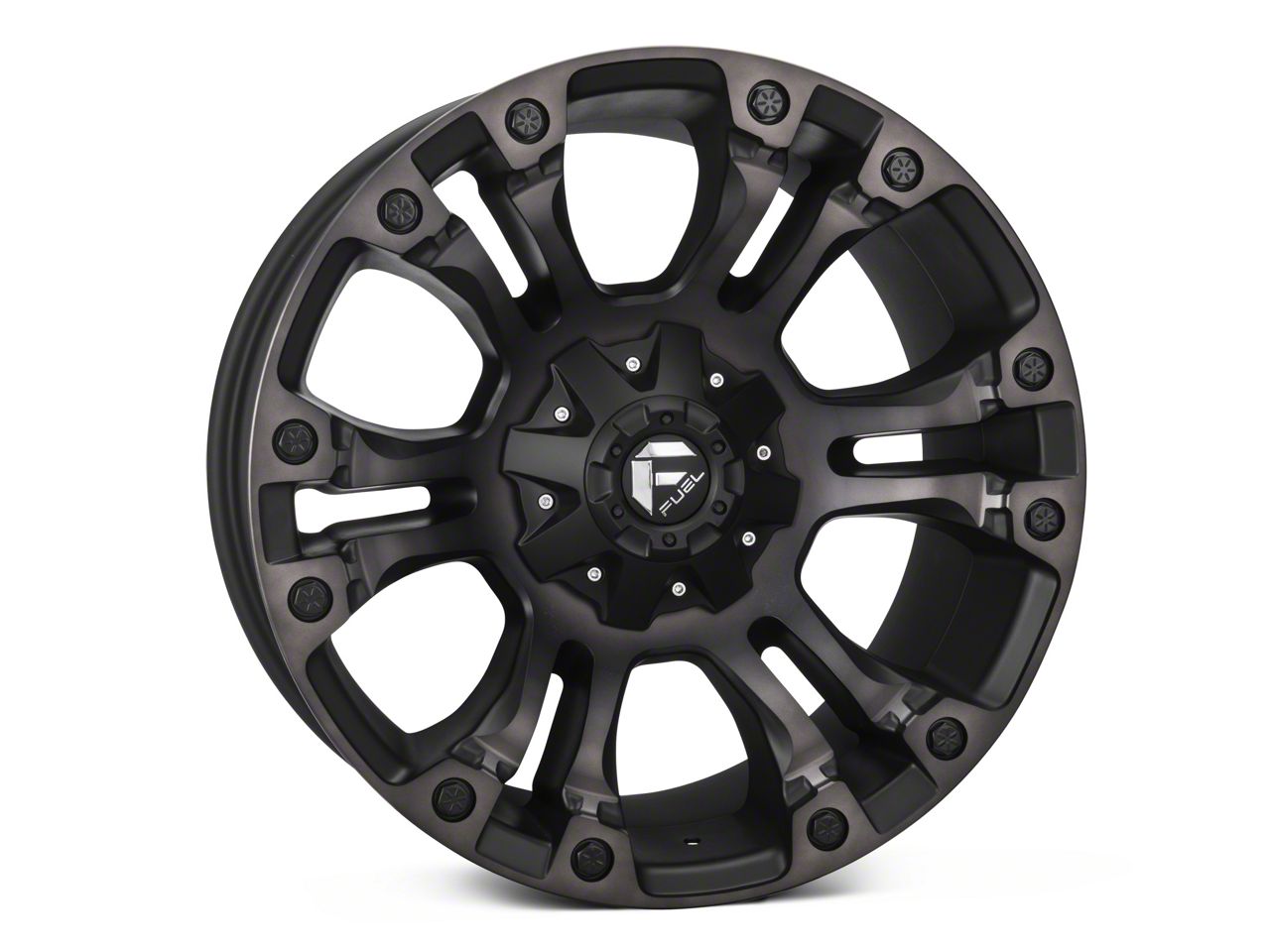 Fuel Wheels Vapor Matte Black Double Dark Tint 6-Lug Wheel; 22x12; -44mm Offset The Fuel Wheels Vapor Matte Black Double Dark Tint 6-Lug Wheel combines a sleek, sophisticated design with premium construction that enhances the visual appeal and complements a wide range of vehicle styles. This wheel is perfect for those seeking to make a bold statement while maintaining elegance and robustness.