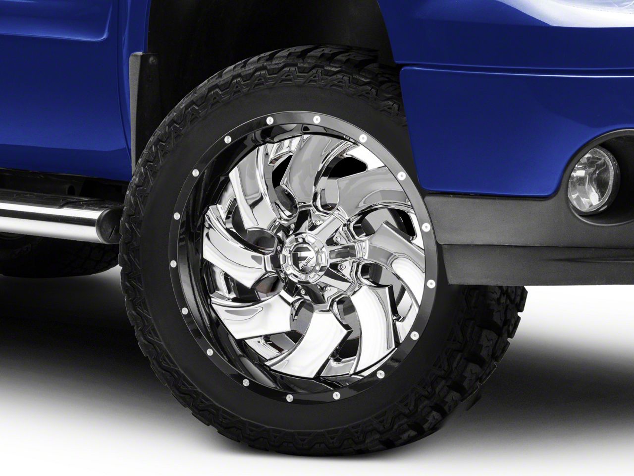 AmericanTrucks no longer carries the Fuel Wheels Cleaver Chrome with Gloss Black 6-Lug Wheel; 22x10; -13mm Offset (07-13 Sierra 1500). Please check out 1999-2006 GMC Sierra Wheels & Tires for an updated selection.