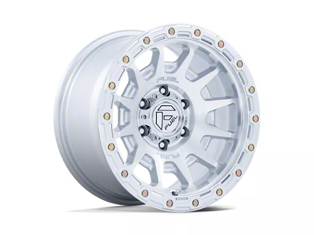 Fuel Wheels Fortress Gloss Silver with Machined Face 6-Lug Wheel; 17x8.5; 0mm Offset delivers a bold and modern aesthetic, ideal for enthusiasts seeking a refined yet assertive look for their vehicle. With its standout design and distinct finish, this wheel enhances the vehicle's visual stance and street presence. The precise craftsmanship and premium aluminum build reflect Fuel Wheels' dedication to quality and distinctive design. Whether parked or in motion, this wheel draws attention with its clean, aggressive styling.