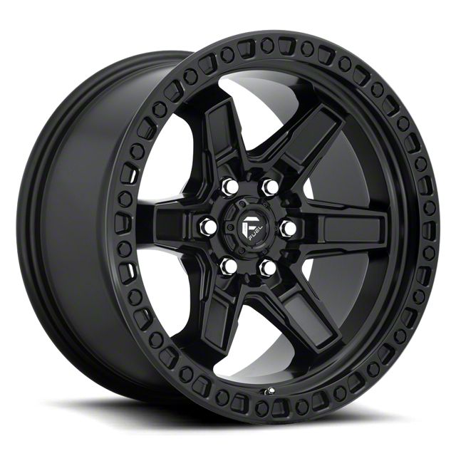 Fuel Wheels Kicker Matte Black 6-Lug Wheel; 17x9; -12mm Offset. The Fuel Wheels Kicker Matte Black 6-Lug Wheel offers a striking balance of style and refinement. Its unique design accentuates the vehicle's aesthetic, while the premium construction underscores its robust nature. This wheel is a perfect choice for those seeking both elegance and a strong visual statement.