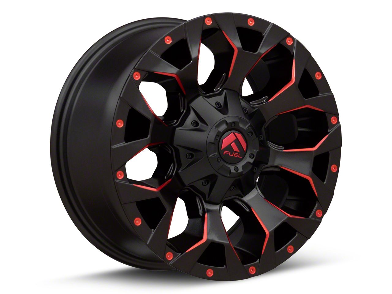 Fuel Wheels Assault Matte Black Red Milled 5-Lug Wheel; 17x8.5; 14mm Offset The Fuel Wheels Assault Matte Black Red Milled 5-Lug Wheel combines a sleek, sophisticated design with premium construction that enhances the visual appeal and complements a wide range of vehicle styles. This wheel is perfect for those seeking to make a bold statement while maintaining elegance and robustness.