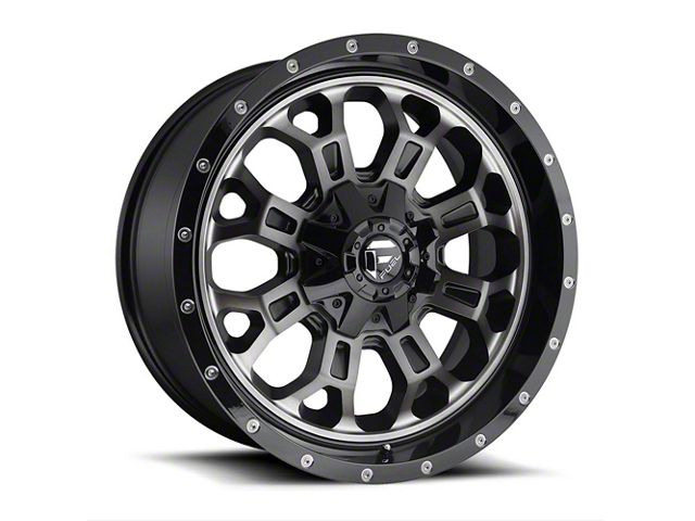 The 20x10 Fuel Wheels Crush Matte Black Machined 5-Lug Wheel is given a powerful black finish with steel machined accents to showcase an impressive stylistic contrast.