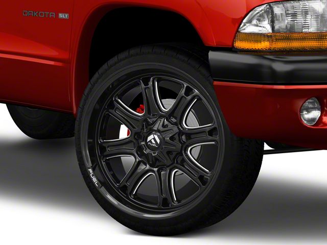 Application. This Fuel Wheels Darkstar Gloss Black Milled 6-Lug Wheel; 22x10; 10mm Offset, with a backspace of 5.894 Inch, 149.7mm; and bolt pattern of 6 x 114.3mm (6 x 4.5-Inch), is designed to fit the 1997-2004 Dakota . The precise specifications of the wheel ensure proper alignment and driving stability, perfectly complementing the vehicle's model. Sold individually.