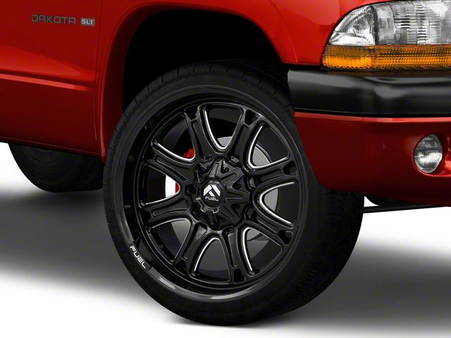 Application. This Fuel Wheels Darkstar Gloss Black Milled 6-Lug Wheel; 22x9; 1mm Offset, with a backspace of 5.039 Inch, 128mm; and bolt pattern of 6 x 114.3mm (6 x 4.5-Inch), is designed to fit the 1997-2004 Dakota . The precise specifications of the wheel ensure proper alignment and driving stability, perfectly complementing the vehicle's model. Sold individually.