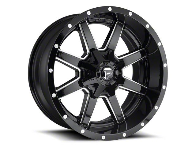 Fuel Wheels Maverick Gloss Black Milled 5-Lug Wheel; 22x12; -44mm Offset - This wheel's elegant design will certainly enhance your vehicle's aesthetic, complementing its luxury and performance. The unique styling of this wheel makes it an ideal choice for a standout quality of your ride, reflecting the premium quality associated with the Fuel Wheels brand.