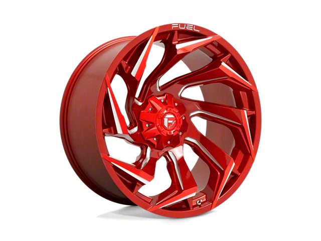 Fuel Wheels Reaction Candy Red Milled 5-Lug Wheel; 24x12; -44mm Offset The Fuel Wheels Reaction Candy Red Milled 5-Lug Wheel combines a sleek, sophisticated design with premium construction that enhances the visual appeal and complements a wide range of vehicle styles. This wheel is perfect for those seeking to make a bold statement while maintaining elegance and robustness.