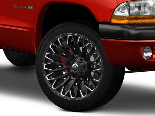 Application. This Fuel Wheels Strike Gloss Black Milled 6-Lug Wheel; 20x9; 1mm Offset, with a backspace of 5.039 Inch, 128mm; and bolt pattern of 6 x 114.3mm (6 x 4.5-Inch), is designed to fit the 1997-2004 Dakota . The precise specifications of the wheel ensure proper alignment and driving stability, perfectly complementing the vehicle's model. Sold individually.