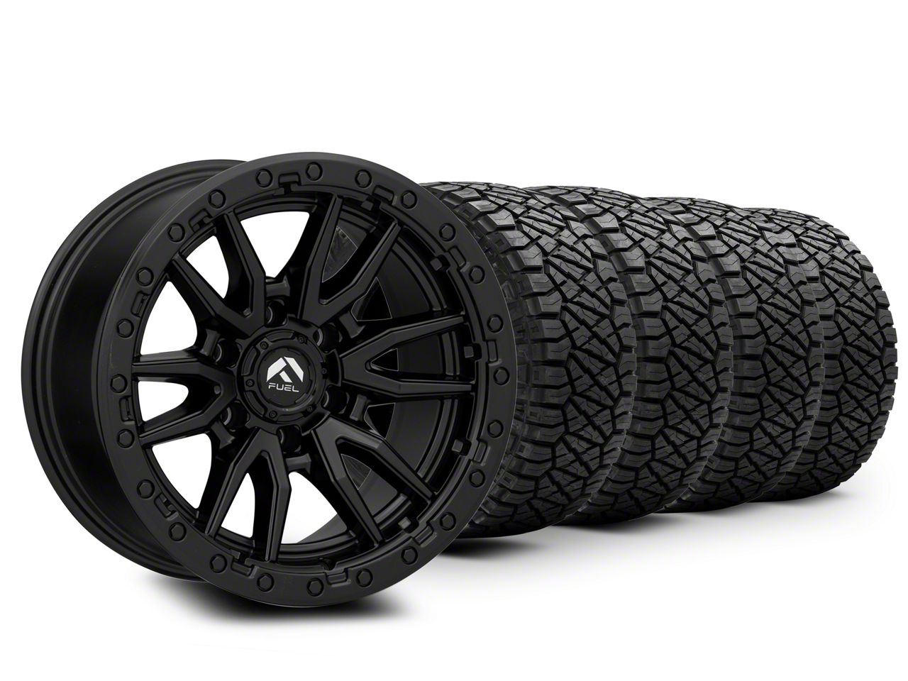 Mounted and Balanced Wheel and Tire Kit. This wheel and tire combo kit features (4) 20x9 Fuel Wheels Rebel Matte Black 6-Lug Wheels and (4) NITTO All-Terrain Ridge Grappler A/T 33x12.50R20 tires that have been put together into an easy to buy kit that arrives to your door already mounted and balanced ready to be installed on your vehicle.
