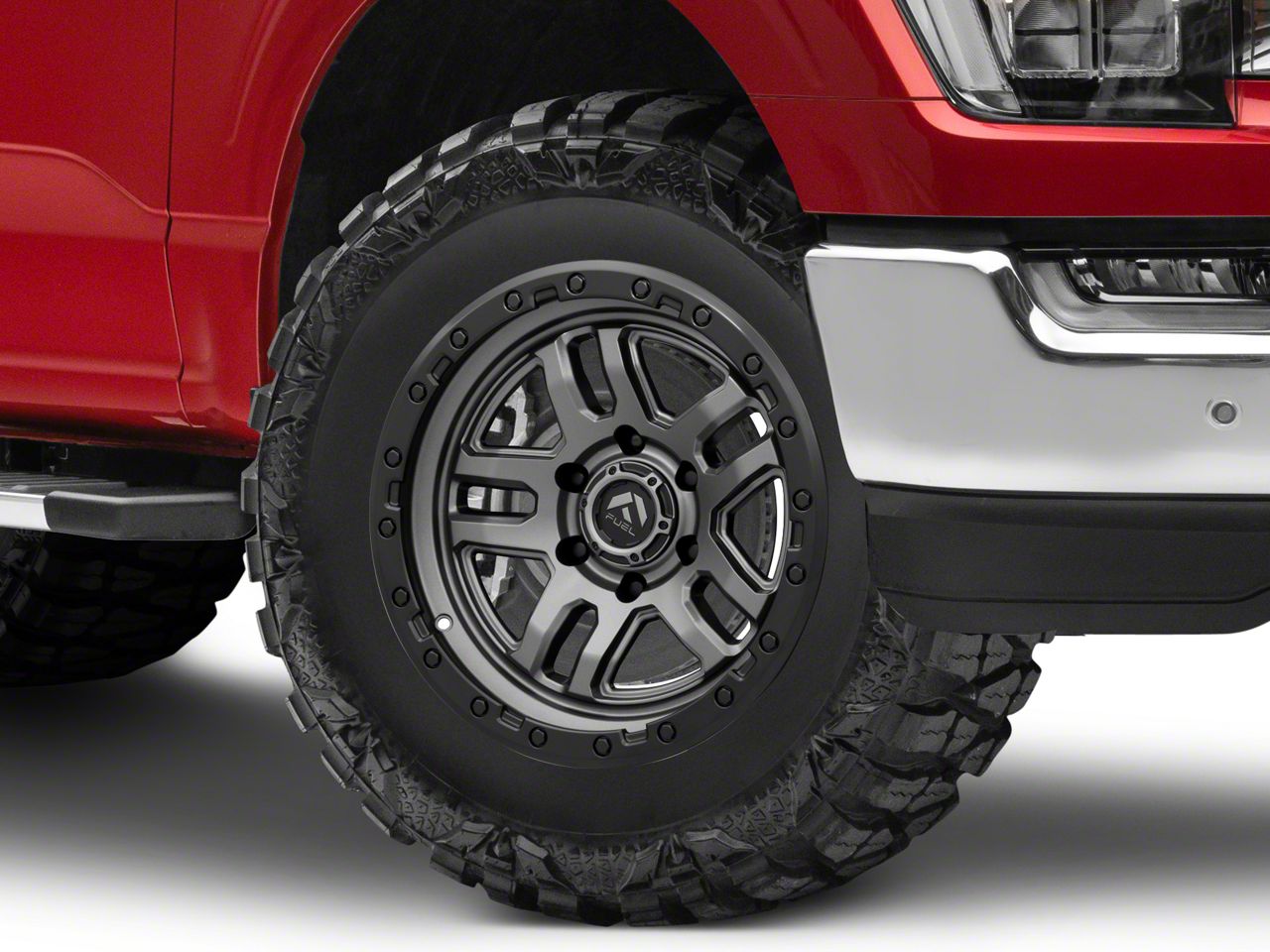 Application. This Fuel Wheels Ammo Matte Gunmetal with Black Bead Ring 6-Lug Wheel; 18x9; 1mm Offset, with a backspacing of 5.039 Inch, 128mm and a bolt pattern of 6 x 135mm (6 x 5.31-Inch), offers superior alignment and stability. It's precisely engineered to enhance your vehicle's performance. Designed to fit 2021-2026 F-150 models, it ensures a perfect fit and impeccable style. Sold individually.