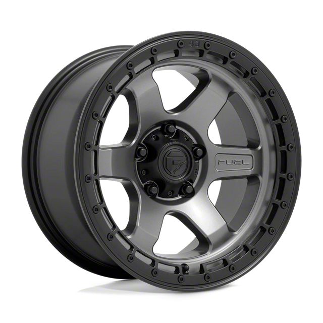 Fuel Wheels Block Matte Gunmetal with Black Ring 6-Lug Wheel; 18x9; 20mm Offset The Fuel Wheels Block Matte Gunmetal with Black Ring 6-Lug Wheel combines a sleek, sophisticated design with premium construction that enhances the visual appeal and complements a wide range of vehicle styles. This wheel is perfect for those seeking to make a bold statement while maintaining elegance and robustness.